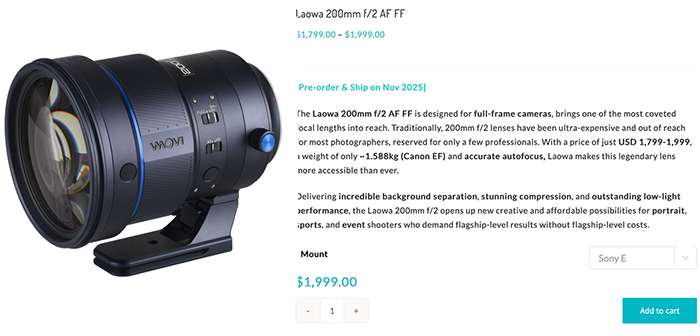 The new Laowa 200mm f/2.0 Z lens is now available for preorder at Venusstore (wordlwide shipment).