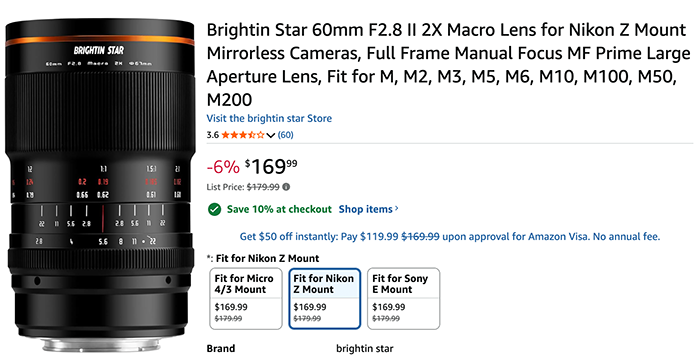 Now available for preorder: New Brightin Star 60mm f/2.8 II Macro APS-C Z Lens